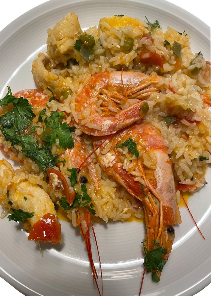 Seafood Symphony on a Bed of Savory Rice.